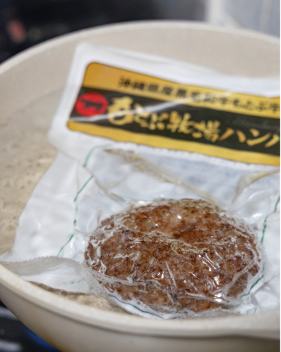 - 5. ハンバーグを表示通り温め、お皿に盛り付けたらトマトソースを上からかける。