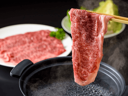 まろやかな脂が溶け合うすき焼きだれは濃厚ながらもあっさりとした味わい。 もとぶ牛ロースから出たダシがすき焼きをより一層美味しくします。